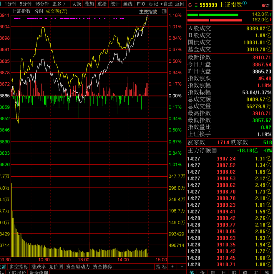 正式确认现在大盘涨到3910.71点,精确到小数点后两位,精确万分之一,就是今天