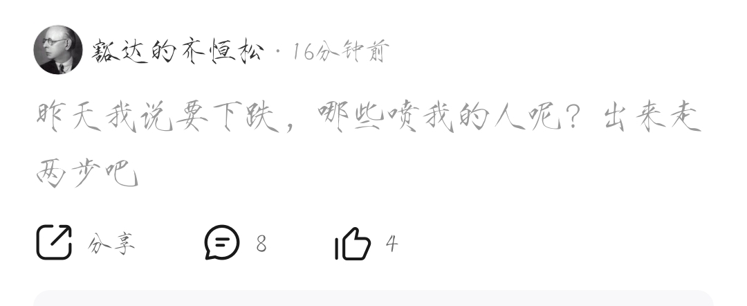 温馨提示: 1.根据《证券法》规定,禁止编造、传播虚假信息或者误导性信息,扰乱证券市场;2.用户在本社区发表的所有资料、言论等仅代表个人观点,与本网站立场无关,不对您构成任何投资建议。用户应基于自己的独立判断,自行决定证券投资并承担相应风险。《东方财富社区管理规定》