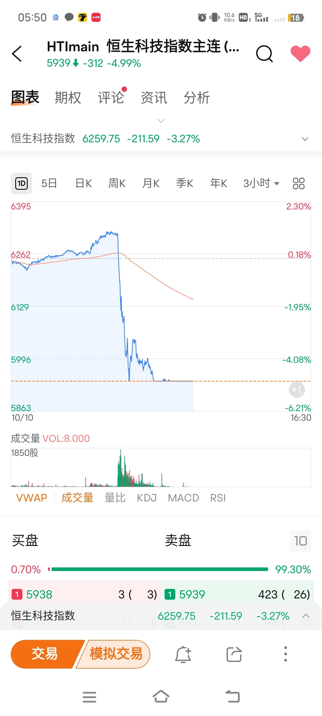 $恒生科技指数(HS|HSTECH)$ 直接跌停了