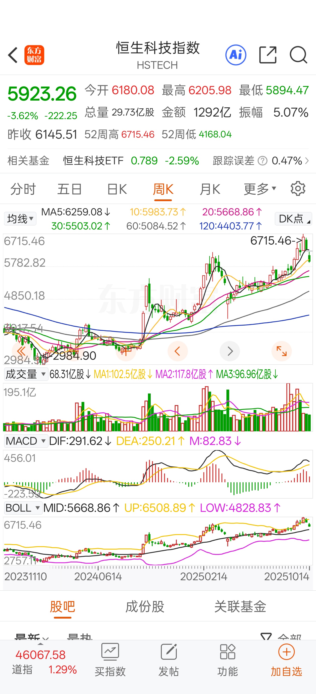 $恒生科技指数(HS|HSTECH)$ 看看周线图,趋势是不是很明朗呢?