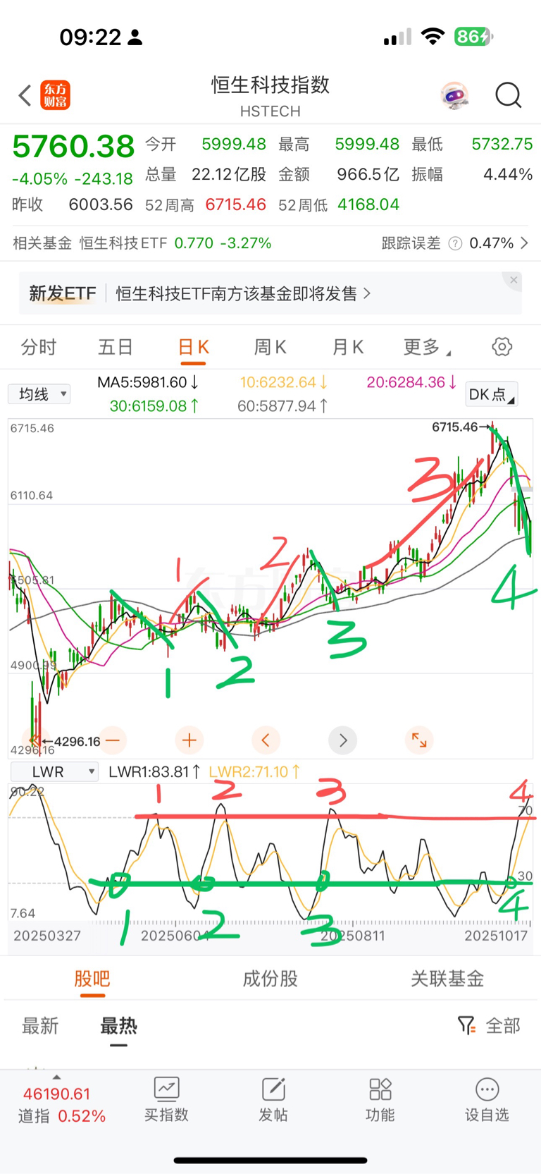 $恒生科技指数(HS|HSTECH)$ 9月底的时候提醒调整是大概率事件,不知道大家跑了没?现在一样的选择又来了,日线级别的,反弹在即,你信不信?周五尾盘买进了吗?不过话说回来,最关键的还是要看自己的交易模式,小波段有小波段的玩法,中长线的有中长线的交易模式,超短线的又是另外一种方式。等这波反弹完的高度再看大一点的级别方向。