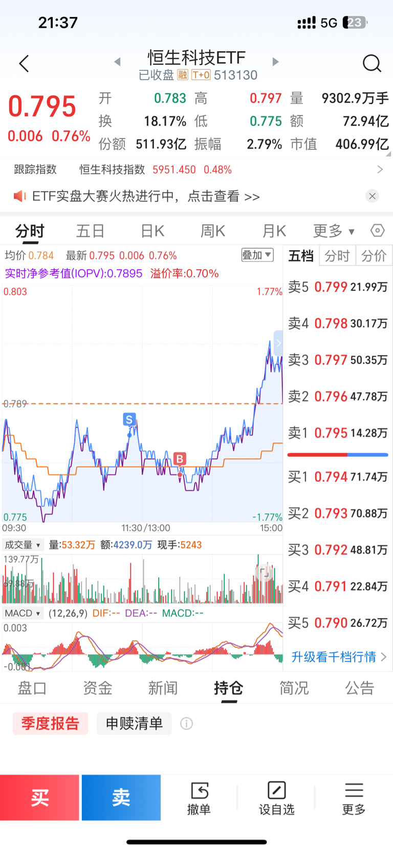 $恒生科技指数(HS|HSTECH)$ 今天差点给我甩下车