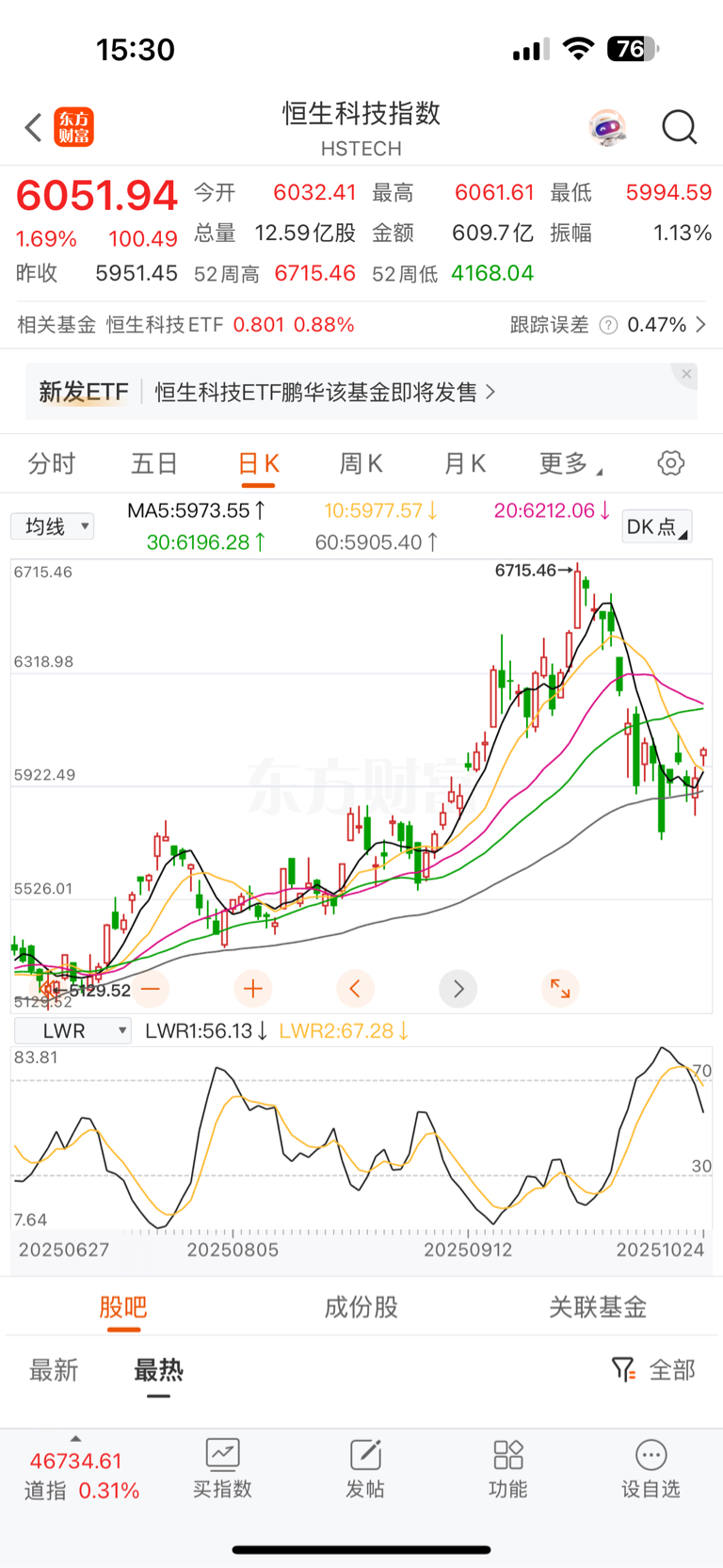 $恒生科技指数(HS|HSTECH)$ 日线级别的指标多方,周线级别中性,但是我不会去猜,超短和短线这里我倾向小区间整理,所以跌下来就买,一反弹就出。猜不对节奏的,这里容易一面双吃,非常痛苦。