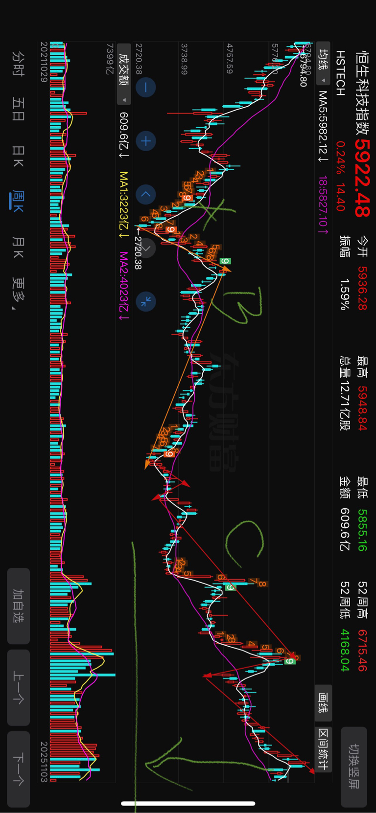 $恒生科技指数(HS|HSTECH)$ 港和科技股见顶了 最多两天 就要快速下杀 !空空空 休息3个月 明年再来 C5已经出来了 接下来就是A杀