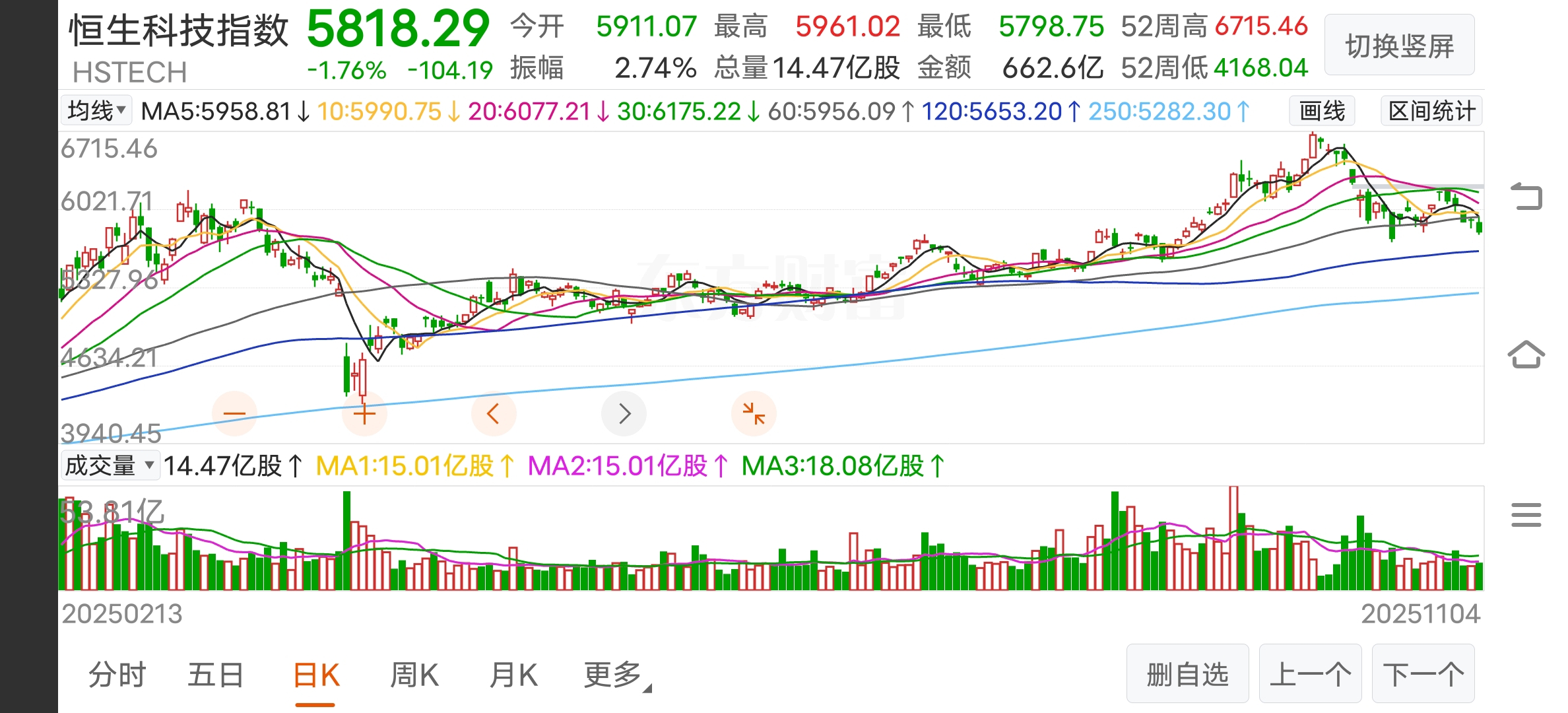 $恒生科技指数(HS|HSTECH)$ 恒生科技120日线强支撑