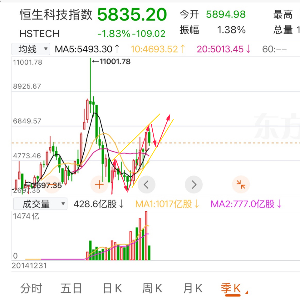 $恒生科技指数(HS|HSTECH)$ 恒科,大概就这样吧