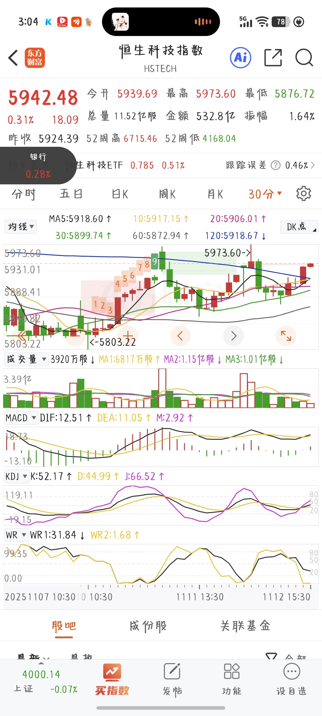 $恒生科技指数(HS|HSTECH)$ 恒科短期看6050 只需要突破5973会打开短期的上涨通道,现在已经下不去了