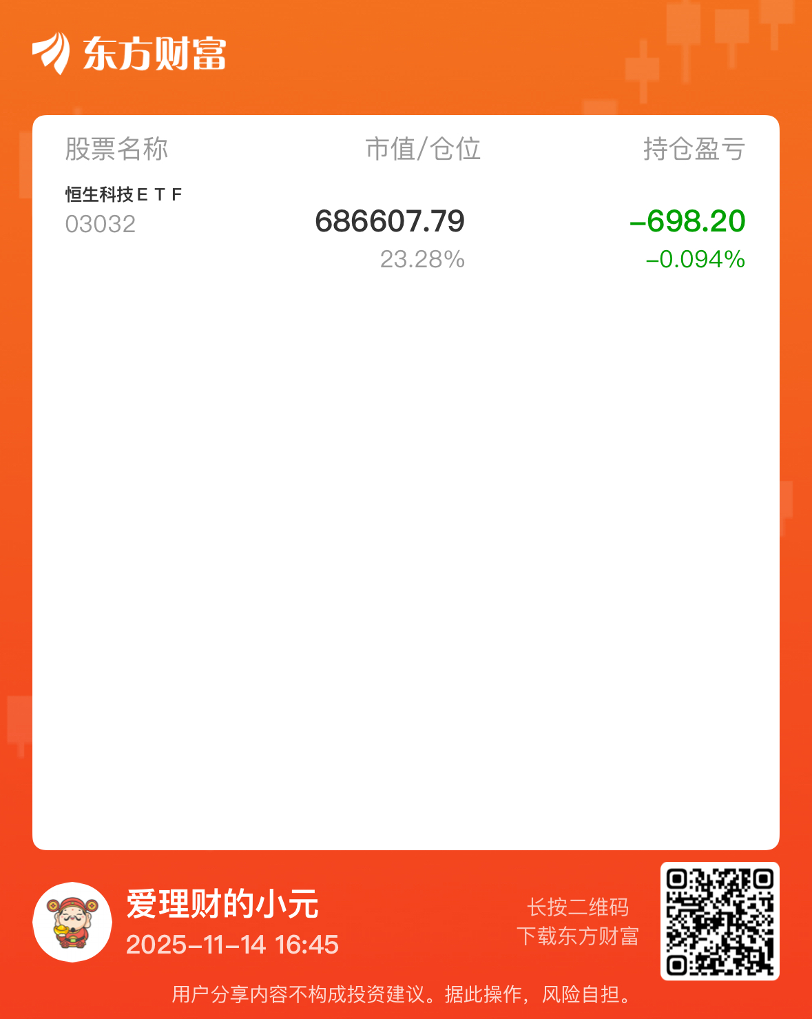 给大家打个气,前两天说100%到11,今年11.05。恒生科技两个月内必破十月份