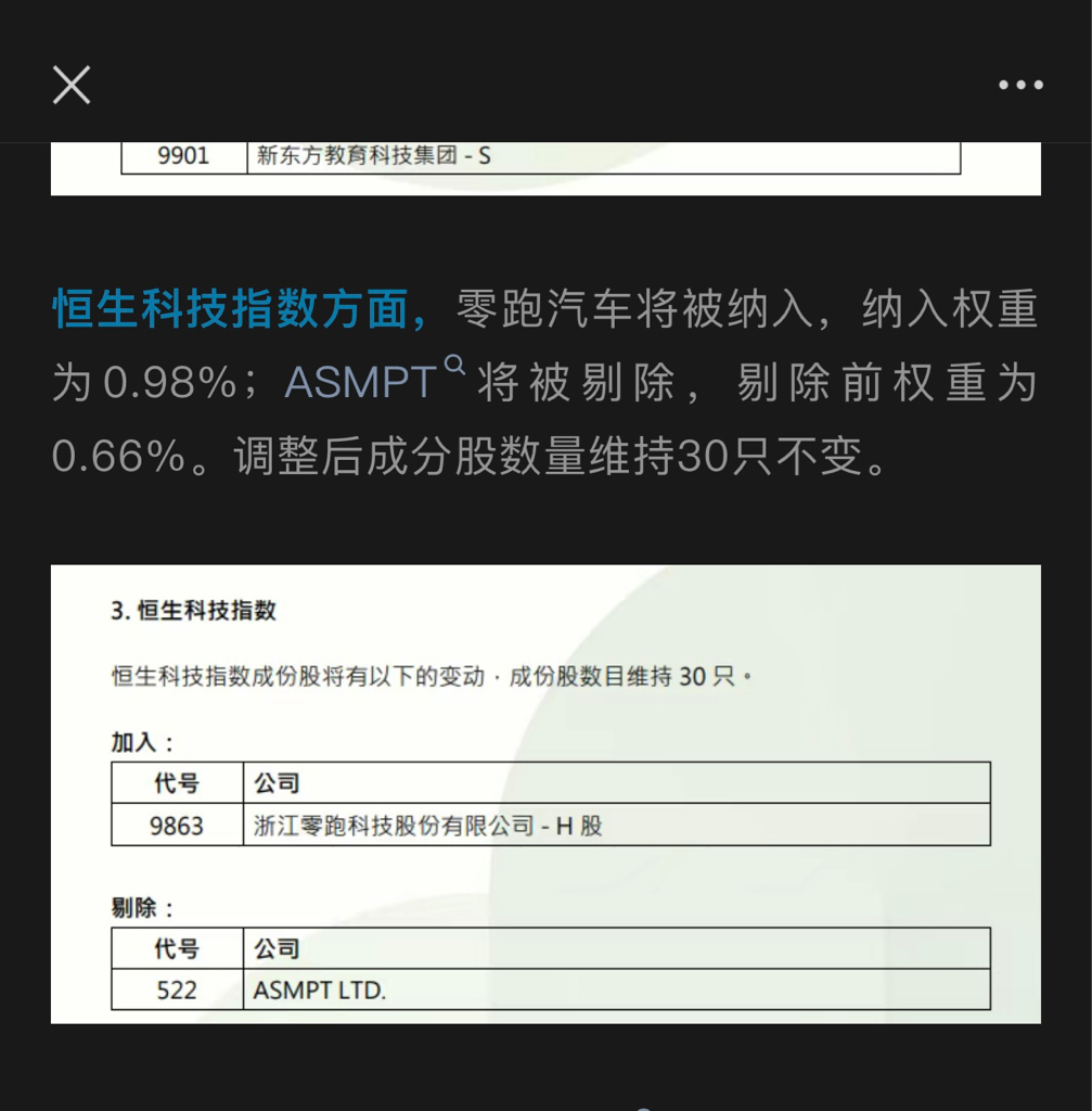 $恒生科技指数(HS|HSTECH)$ 编制里季度变动后又增加了一个车企