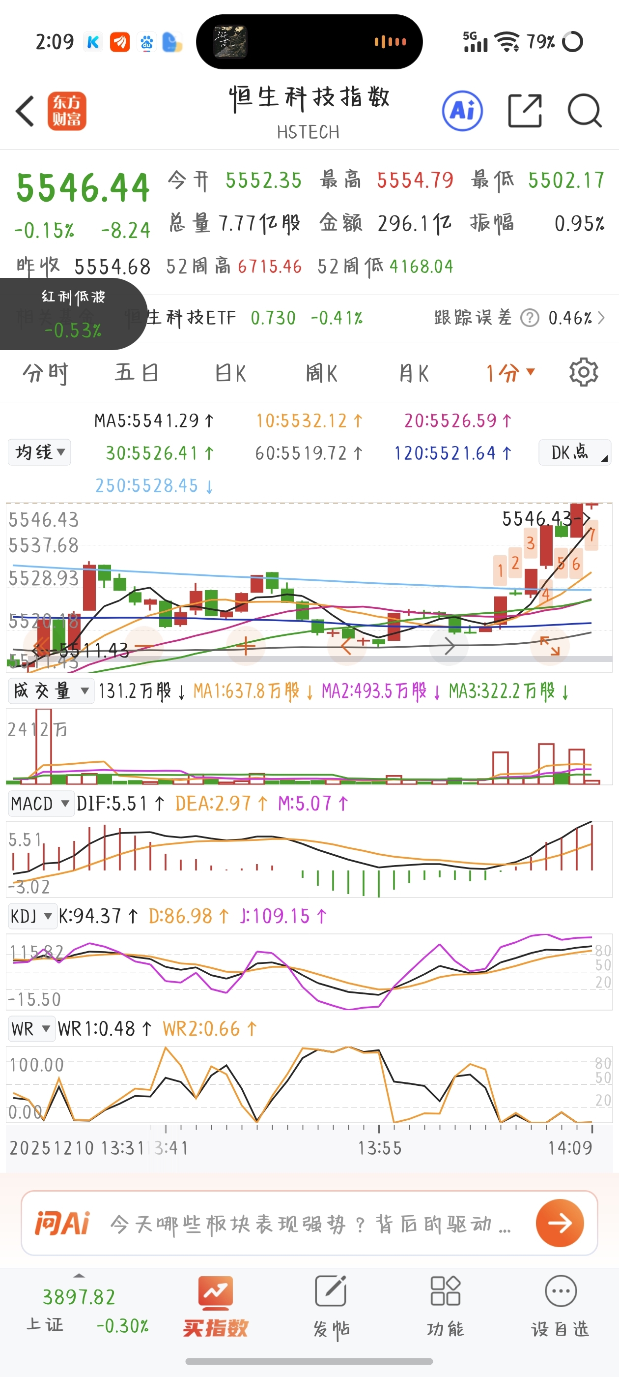 $恒生科技指数(HS|HSTECH)$ 和昨天一样的场景,还是一样5500--5600震荡为主,还有一个缺口呢,操作不变(别减仓这个位置不适合),昨天加过得今天想加的话可以再加的