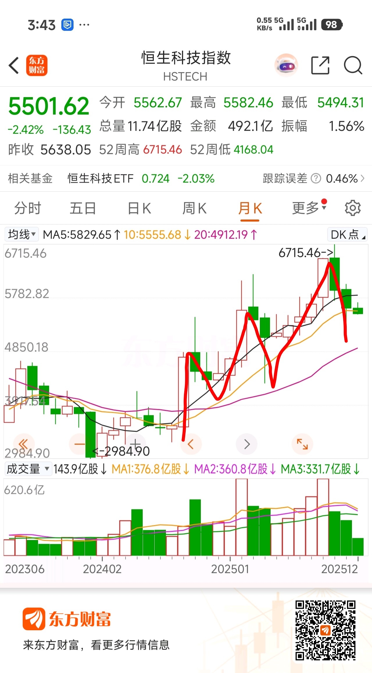 $恒生科技指数(HS|HSTECH)$ 调整到位了