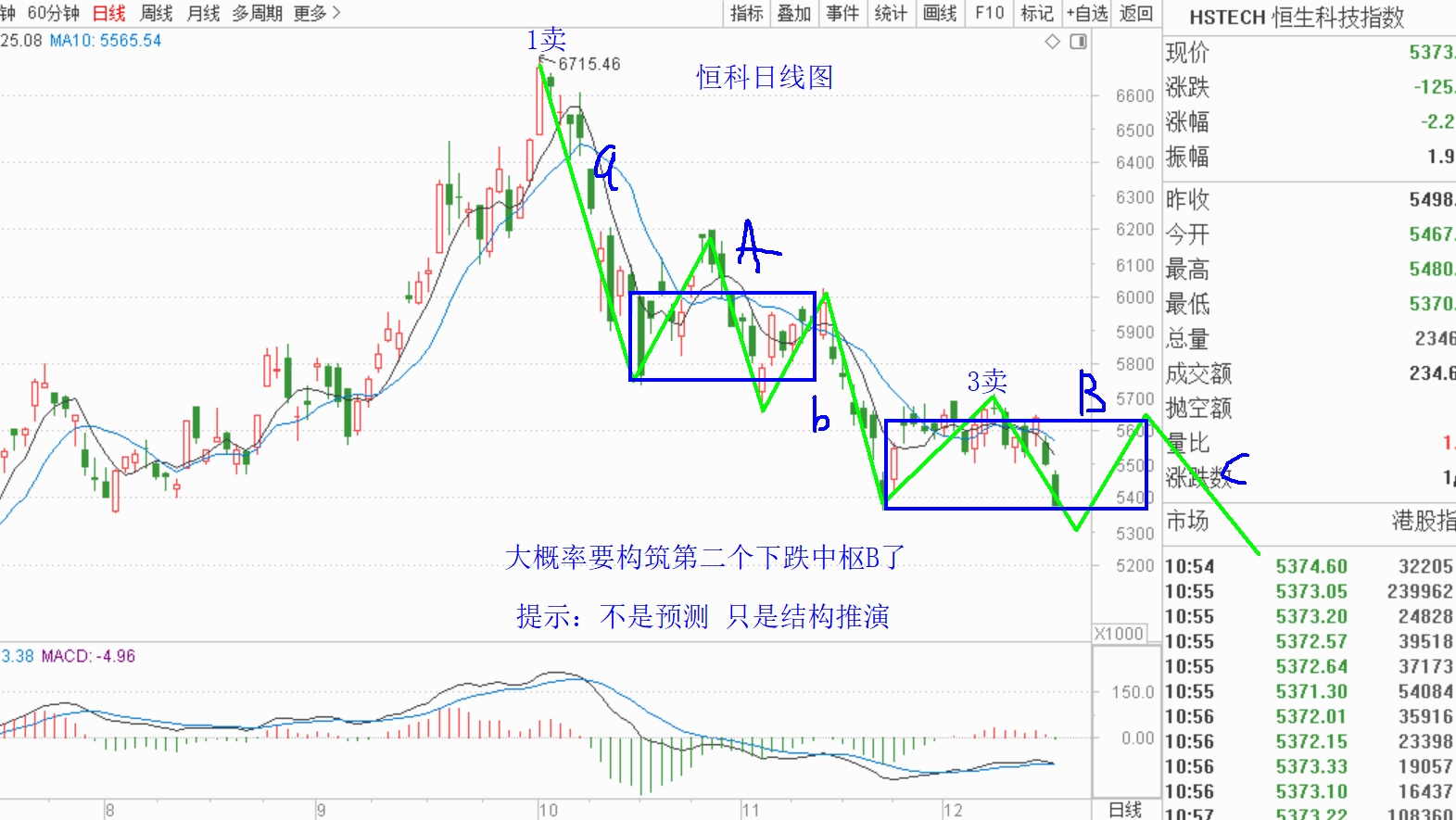 恒科大概率要构筑第二个下跌中枢B了。恒科日线10月2日以来可以处理成下跌结构a+