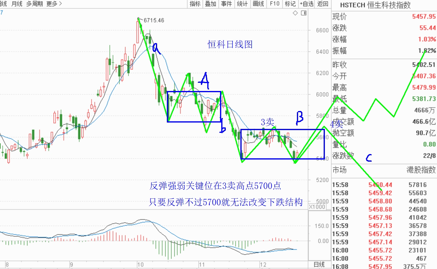 恒科日线图10月2日以来还是下跌结构a+A+b+B。