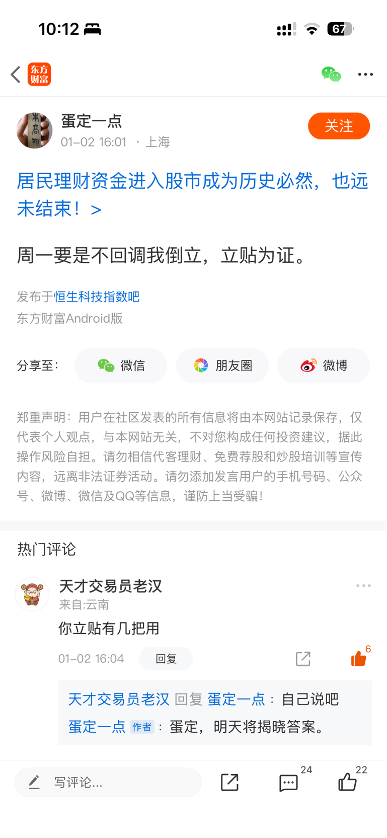 温馨提示: 1.根据《证券法》规定,禁止编造、传播虚假信息或者误导性信息,扰乱证券市场;2.用户在本社区发表的所有资料、言论等仅代表个人观点,与本网站立场无关,不对您构成任何投资建议。用户应基于自己的独立判断,自行决定证券投资并承担相应风险。《东方财富社区管理规定》