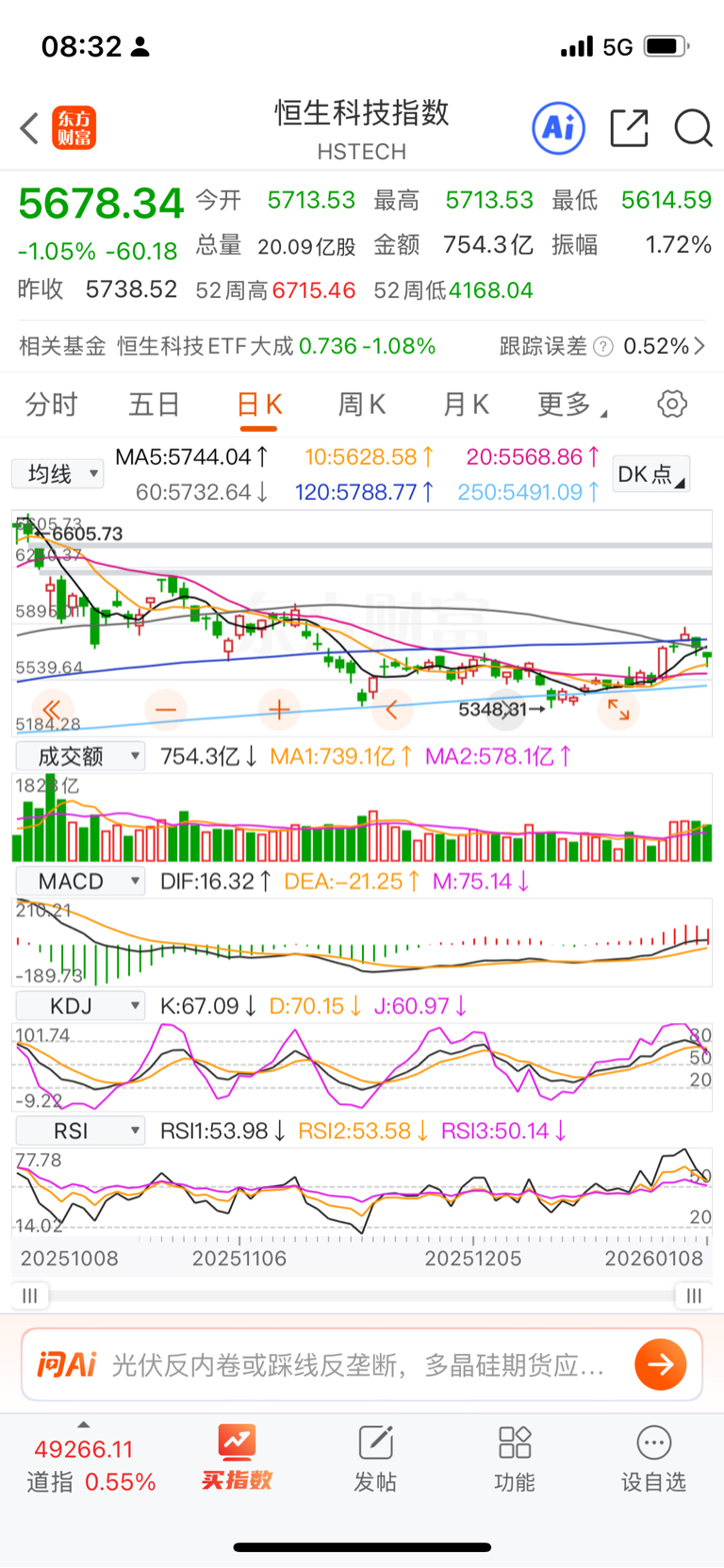 $恒生科技指数(HS|HSTECH)$ 345678顺子
