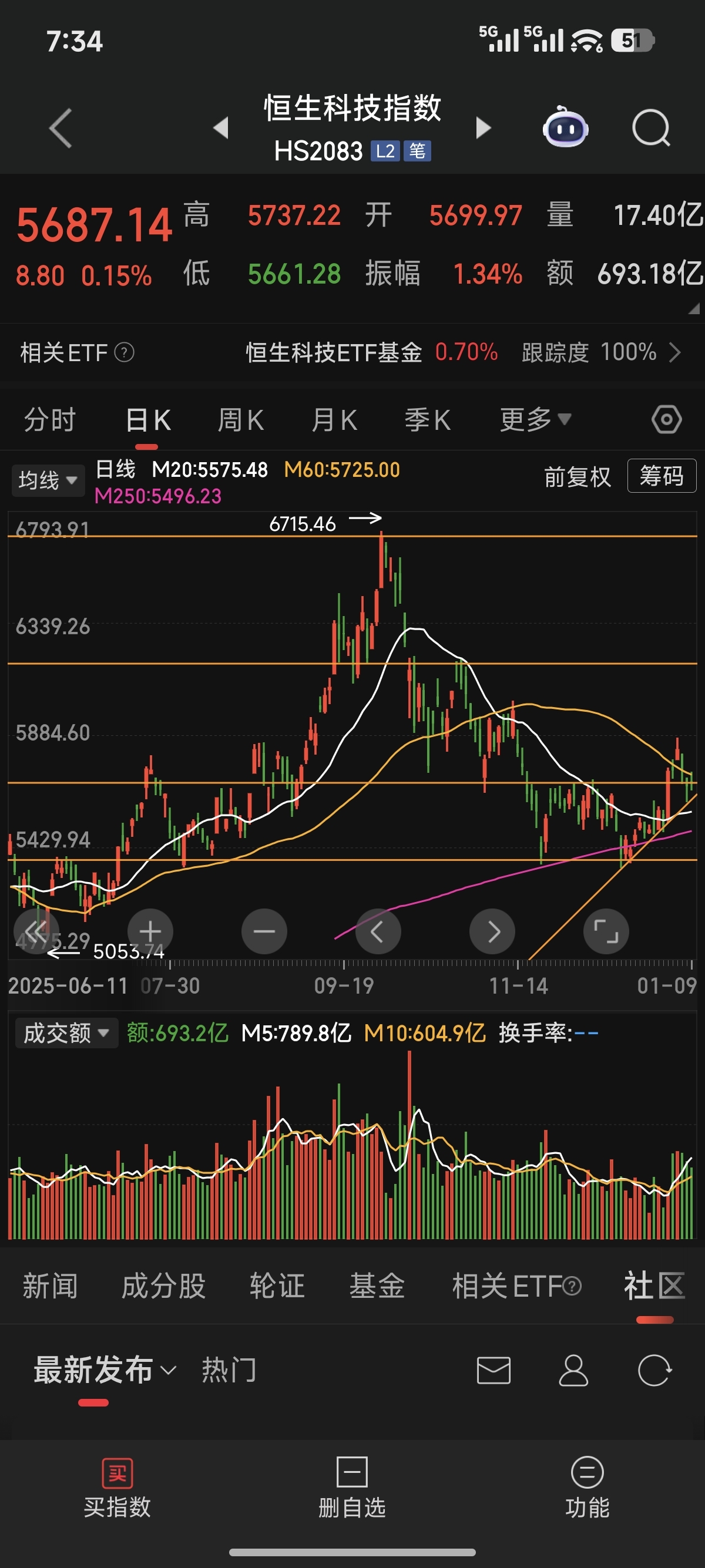 $恒生科技指数(HS|HSTECH)$ )突破震荡区间之后又跌回来了,不跌破上升趋势线没啥问题,第一目标6100附近,第二6600附近,控制仓位!