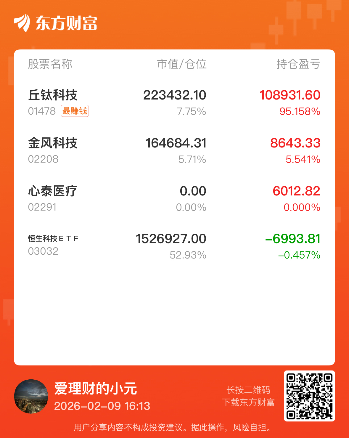 郑重声明:用户在财富号/股吧/博客等社区发表的所有信息(包括但不限于文字、视频、音频、数据及图表)仅代表个人观点,与本网站立场无关,不对您构成任何投资建议,据此操作风险自担。请勿相信代客理财、免费荐股和炒股培训等宣传内容,远离非法证券活动。请勿添加发言用户的手机号码、公众号、微博、微信及QQ等信息,谨防上当受骗!