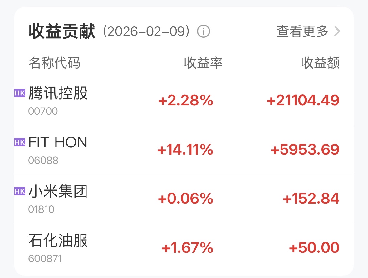 $恒生科技指数(HS|HSTECH)$ 今天持股全部飘红