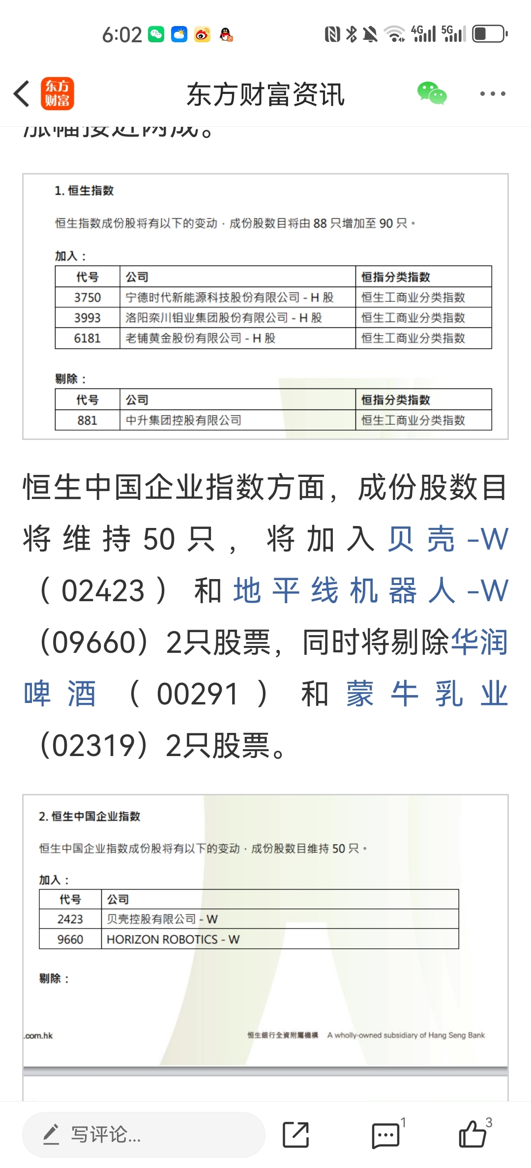好消息恒生指数成份股终于要调整了,坏消息没恒科什么事