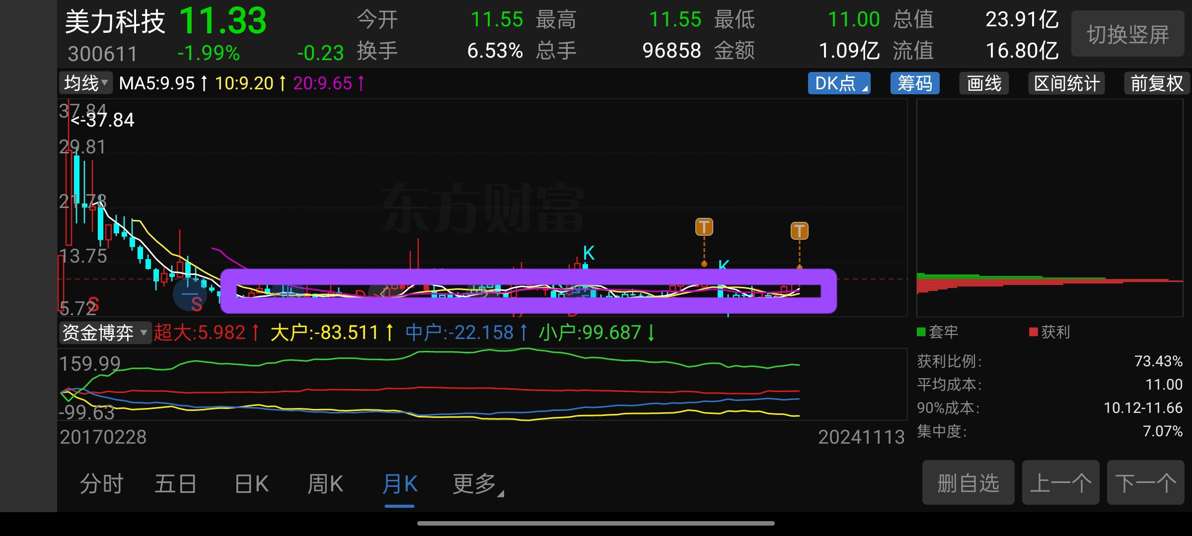 日线,面临前高前的揉搓线,突破否?月线,“横有多长竖有多高”这句股市俗语应验否?