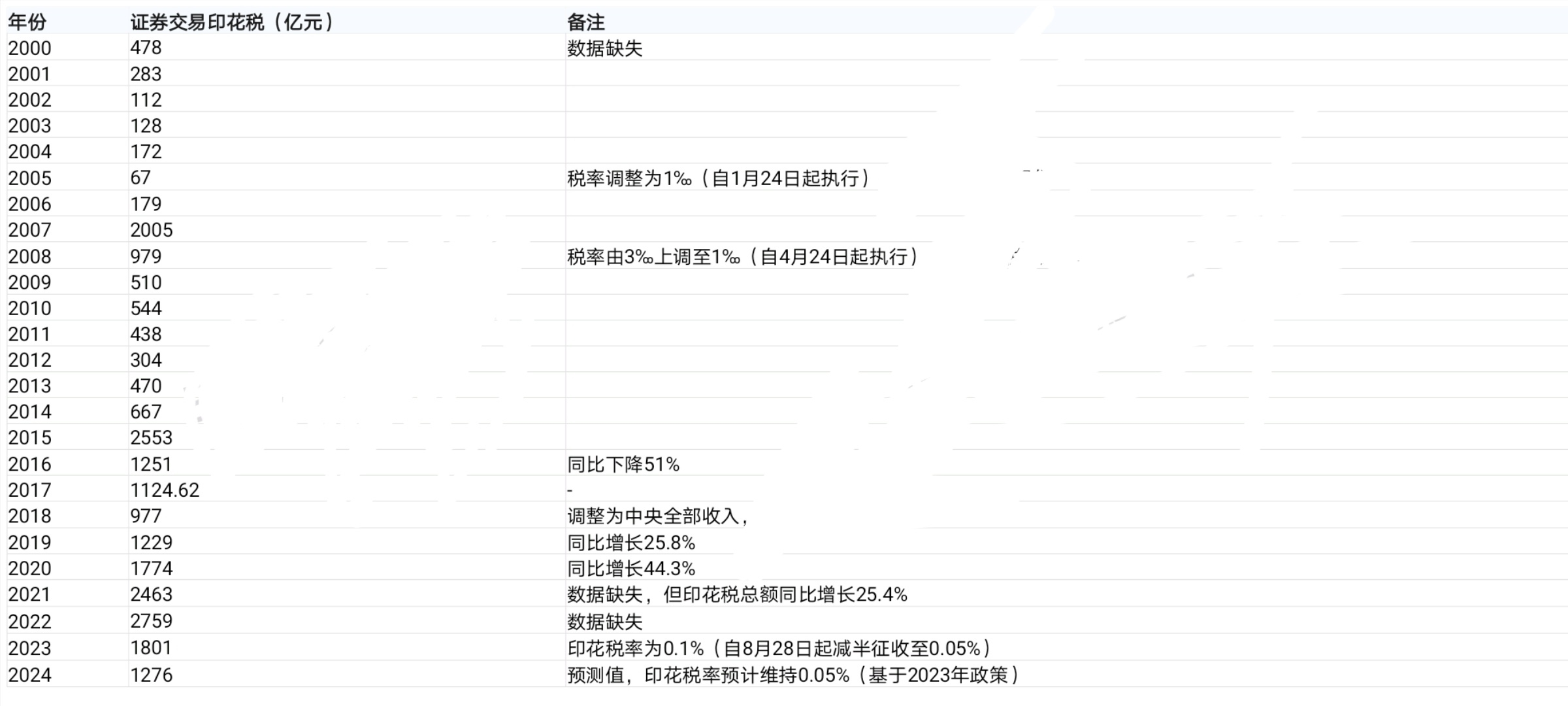 证券交易印花税是个敏感的话题,历史上,每次印花税的减免和加征都会对市场运行起巨大的影响!下图是从2000年起,每年的证券交易印花税数据