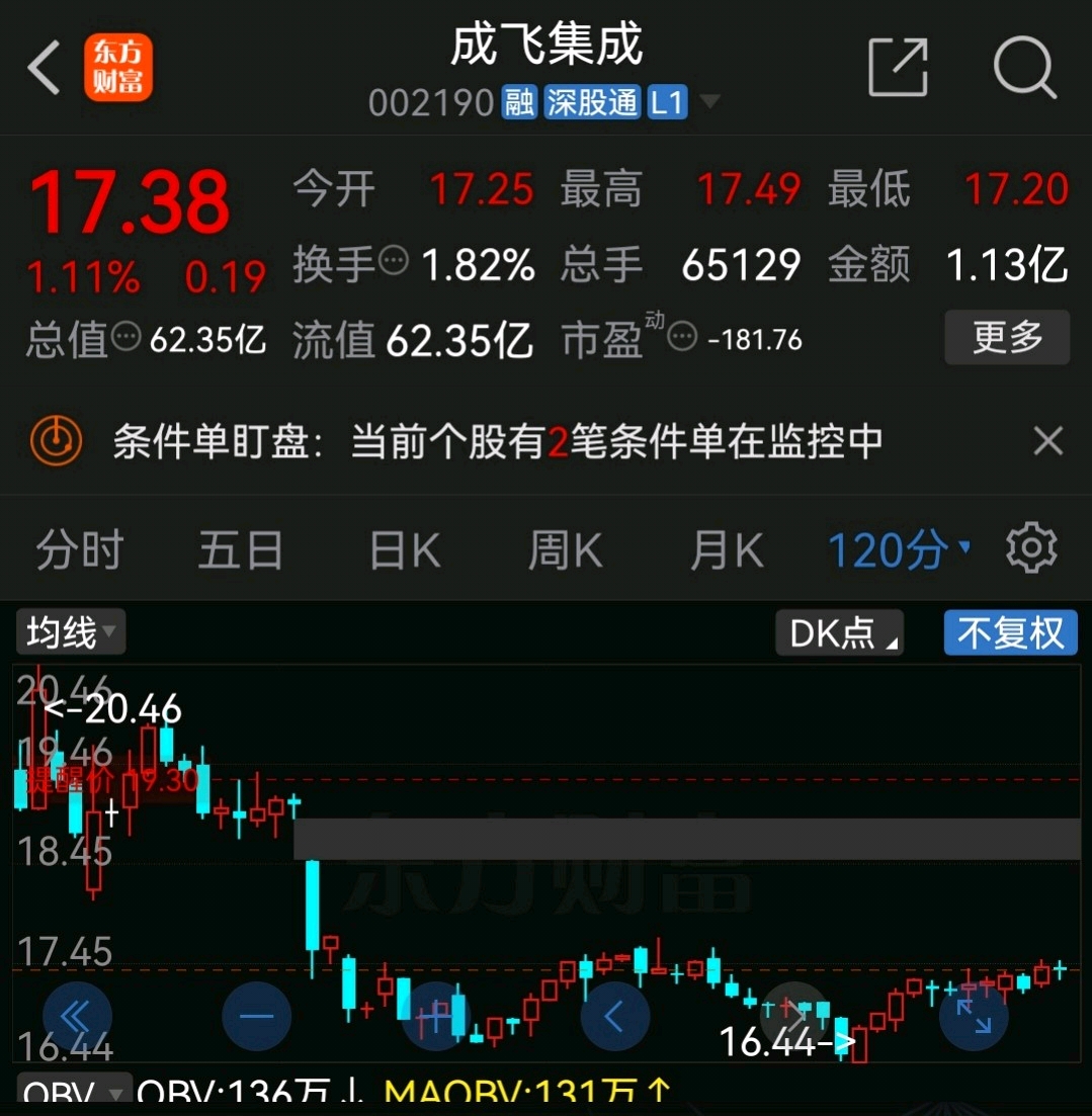 今天看高开,早盘能否突破17.52—17.55元触摸一下17.71元,再看加速情况。