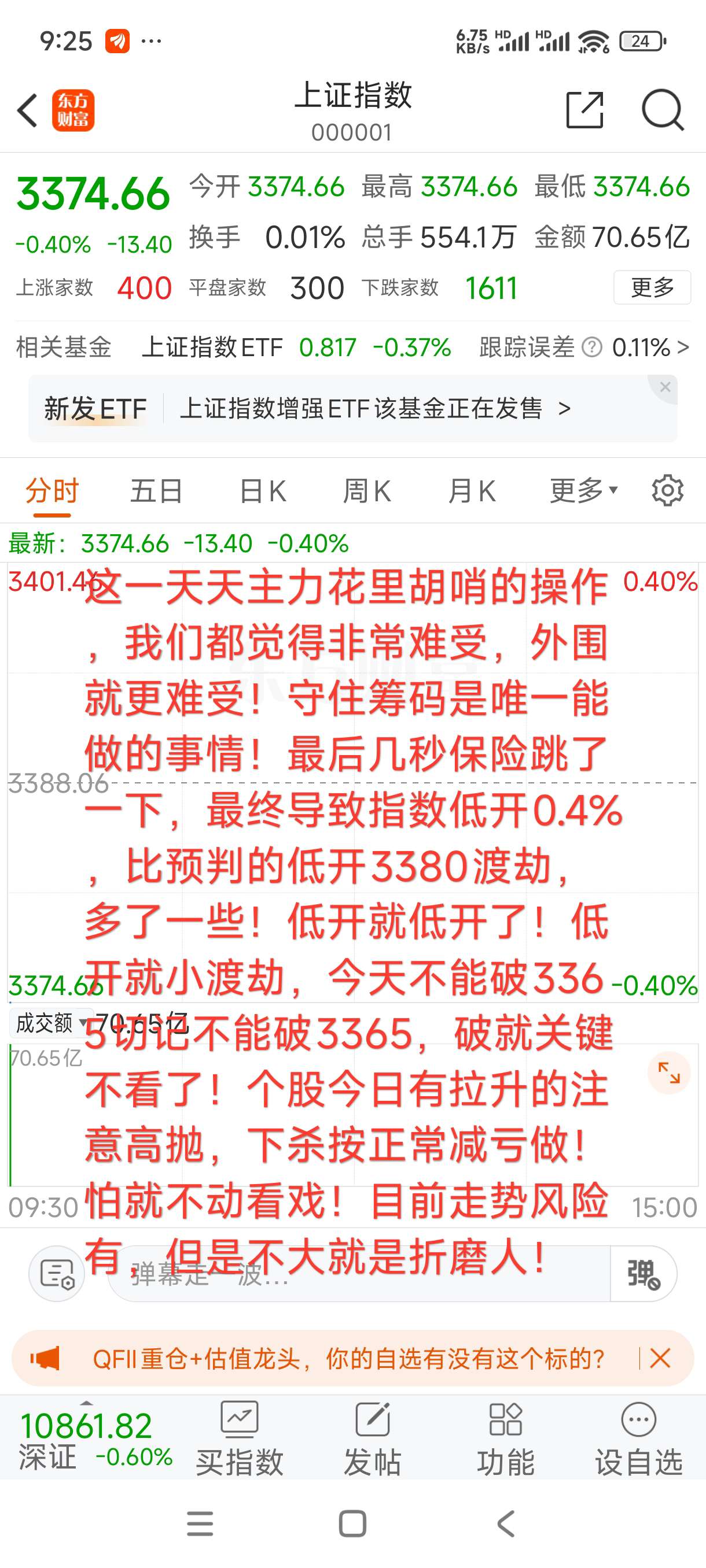 没办法连续拉升两次,再猛砸盘两次!9:25到货破3365不看是对的!哎!一语成谶