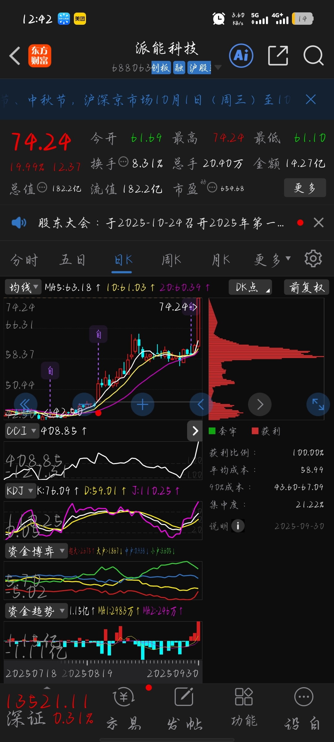 $上证指数(SH000001)$ 以前做长线,这个月第一次做超短线获得19.3%月收益率,但是经常错过很多机会刚卖就涨。这不昨天刚卖派能科技,今天就涨了20%,哪位股友或大神能帮忙分析下,站在昨天角度看,为啥今天有可能涨停吗?求教了$派能科技(SH688063)$