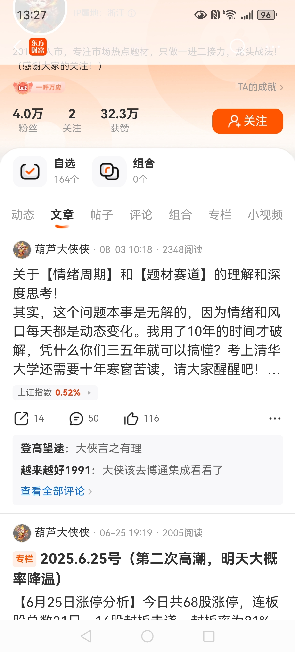 今在推荐栏,看到一位出世的《高人》,实在佩服!我在国庆节非常想知先生对牛市的态度