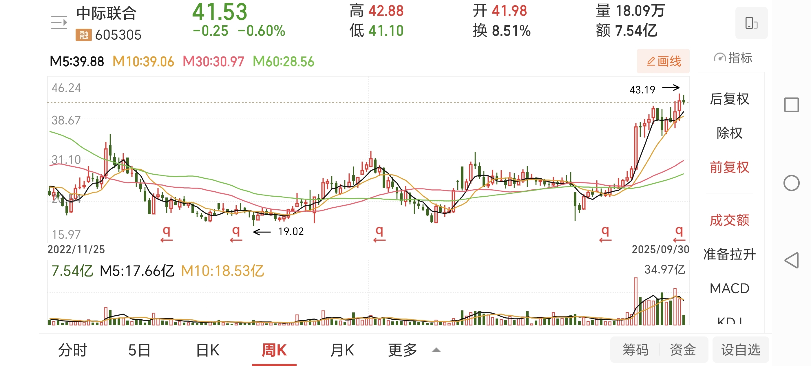 中际联合,则更为强势,近两个月的调整,股价始终在大量阳线的上方进行,这就是强势的表现,因此10月份,这支股票有很大概率能有50个点的收益。