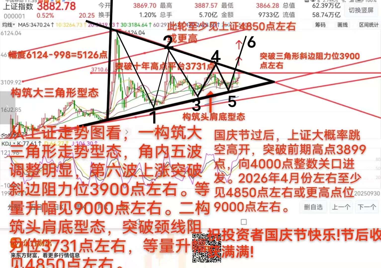 上证指数大盘国庆节后突破前期高点3899点及4000点整数大关。