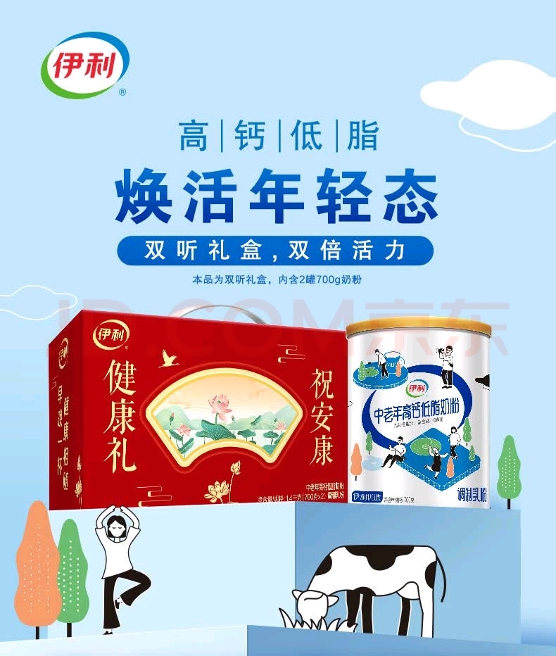 老年时期,伊利的高钙多功能维生素,低脂低糖的奶粉,又可以让你安享晚年。