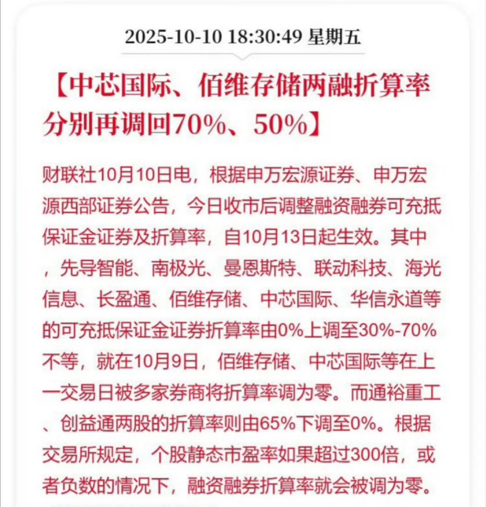 反转!有券商通知,中芯国际、佰维存储两融折算率分别再调回70%、50%,玩呢?中