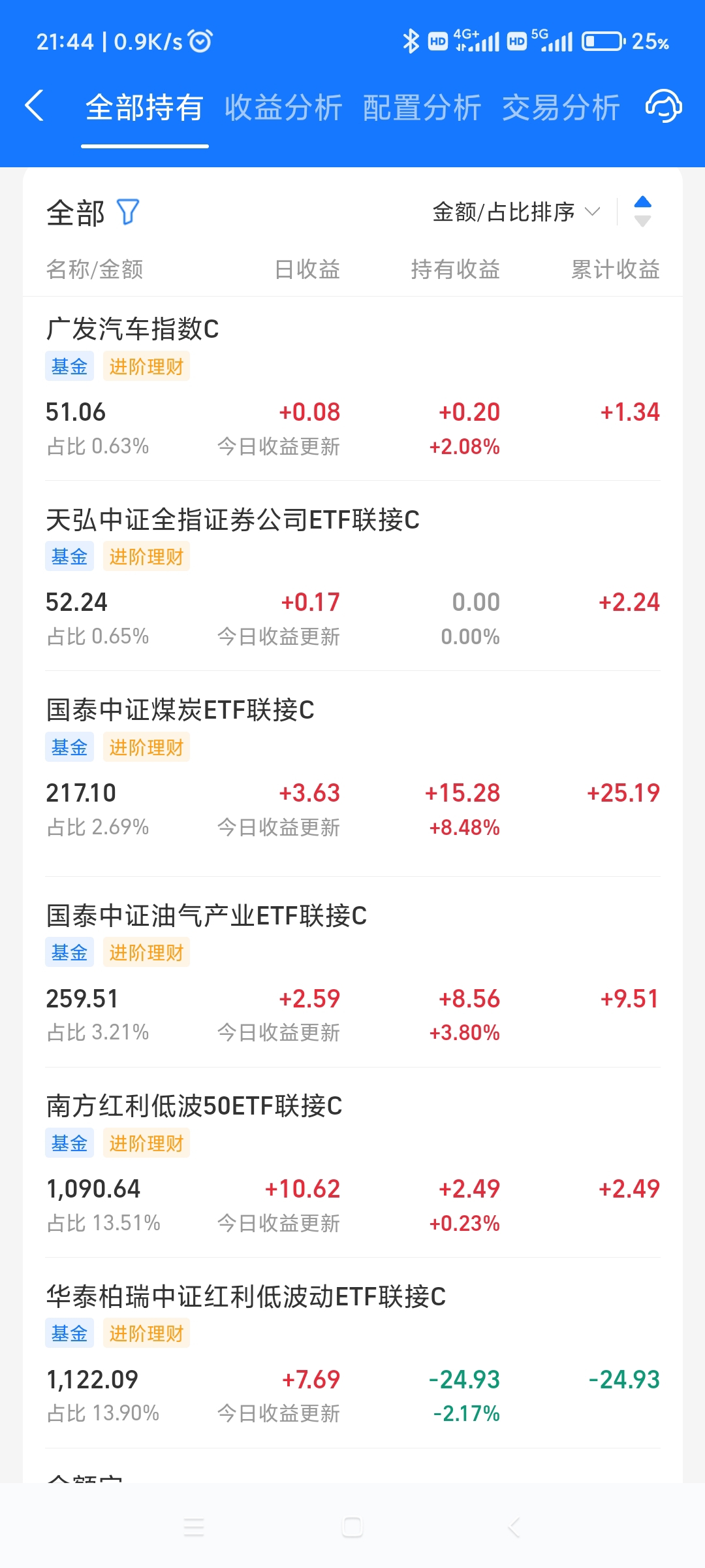 [251010]理财第51天,今天赚了+24.78元,累计盈利69.30。今天的日盈利创了个人记录,很开心,小钱+时间=开心投资。& 以后打算只玩矿业、石油、煤炭、红利(银行)这类基金,太多了也没钱玩。$上证指数(SH000001)$ $沪深300(SH000300)$ $深证成指(SZ399001)$