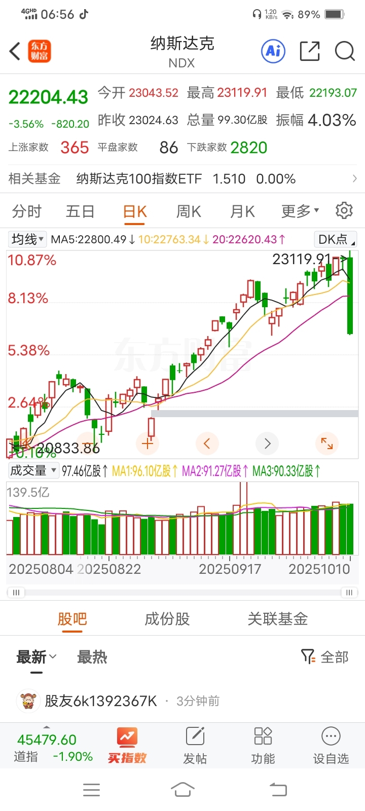昨晚的纳指吓死宝宝了!会不会波及全球?????大A礼拜一悬了……