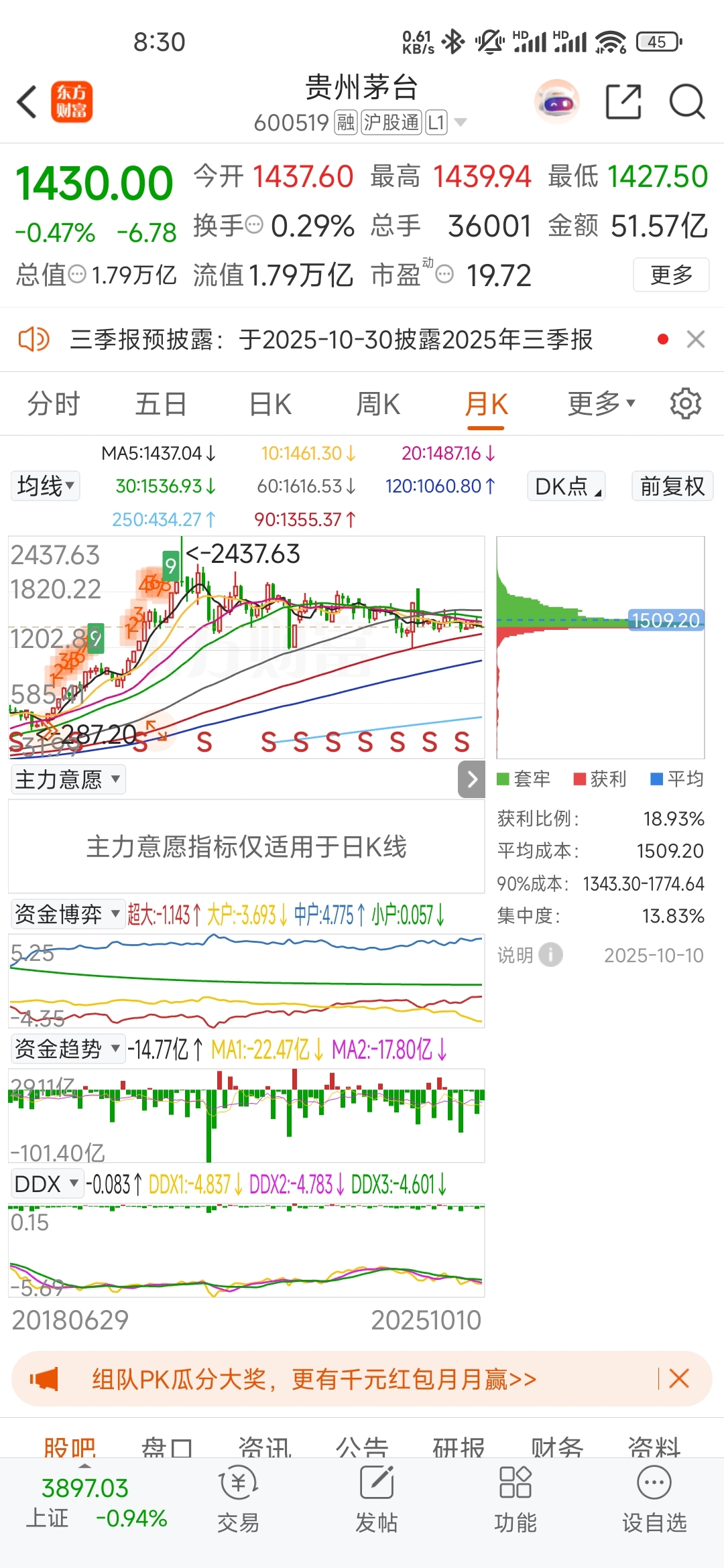 四季度应该属于大消费的天下了。贵州茅台作为大消费的龙头,最近一年可以说是一路下山。 中间也没有像样的反弹。