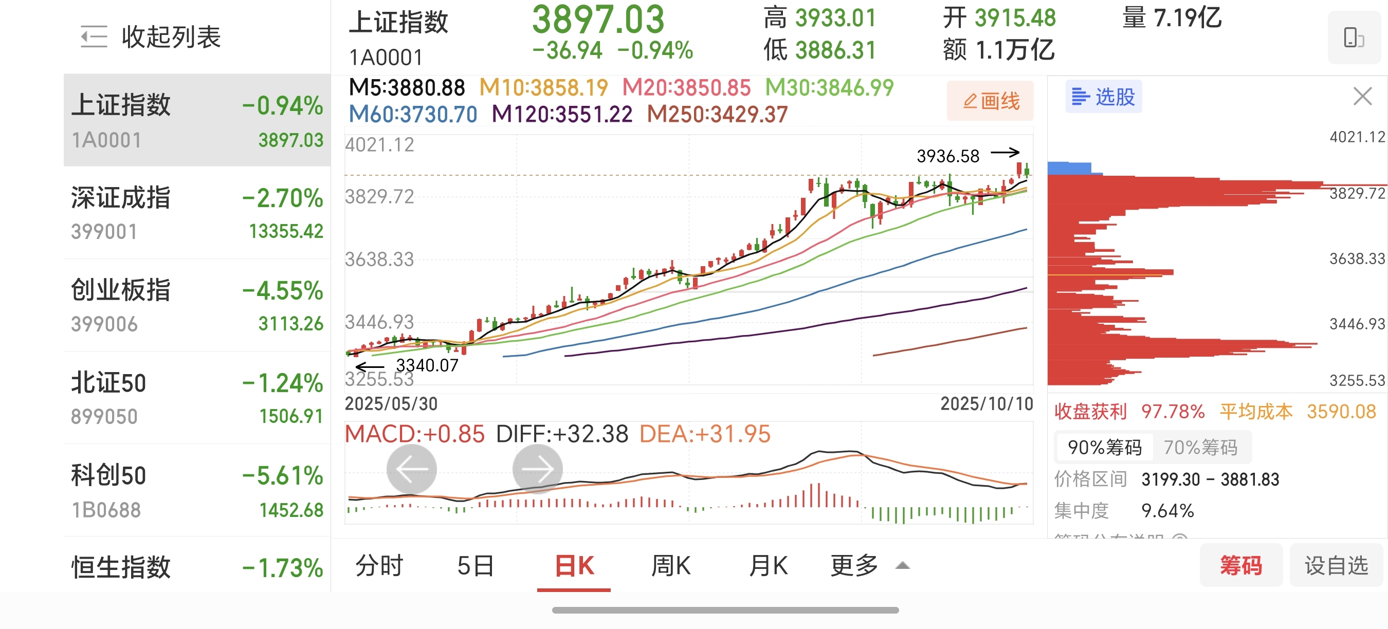 大盘位置在顶部,也做了三个顶,大量筹码也在高位集中了,主力资金早就大量流出,融资