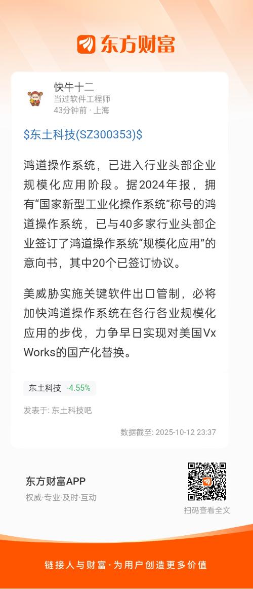 $上证指数(SH000001)$鸿道操作系统,就自研内核这一点,不受美出口管制影响,比麒麟、统信、欧拉操作系统胜出一筹,麒麟、统信、欧拉是Linux上二次开发的,受美国关键软件出口管制影响可能性极大。