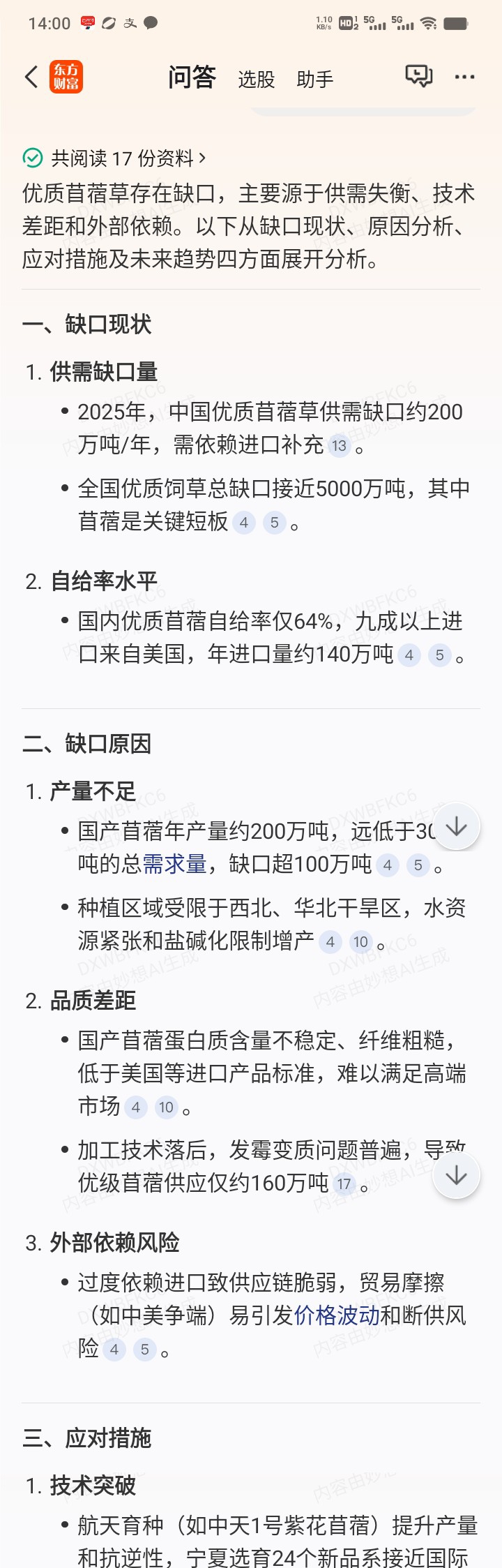 $上证指数(SH000001)$ 优质苜蓿草存在巨大供应缺口