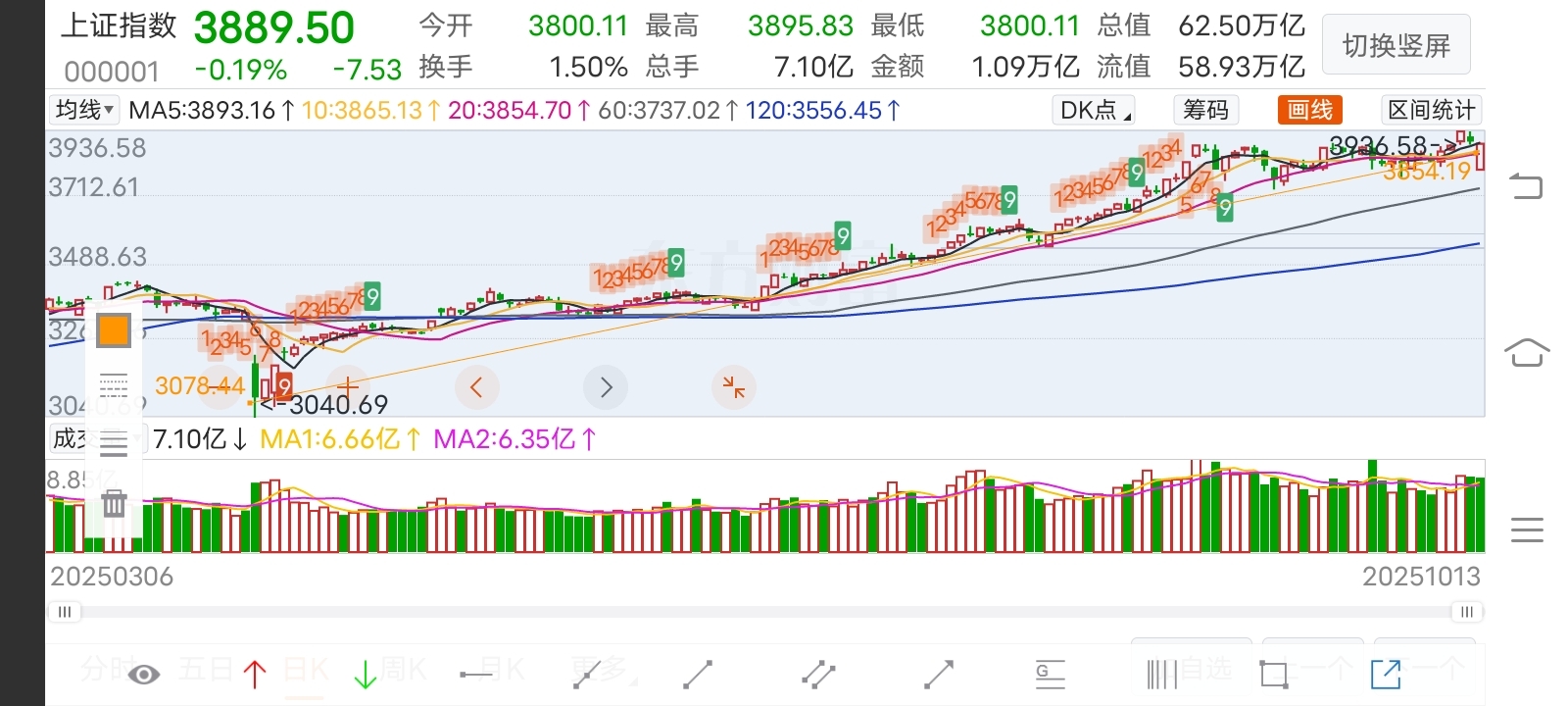 $上证指数(SH000001)$ #炒股日记# 今日大盘低开回调,指数位于5日-10均线之间,收盘价3889.50,较昨日下跌-0.19%。