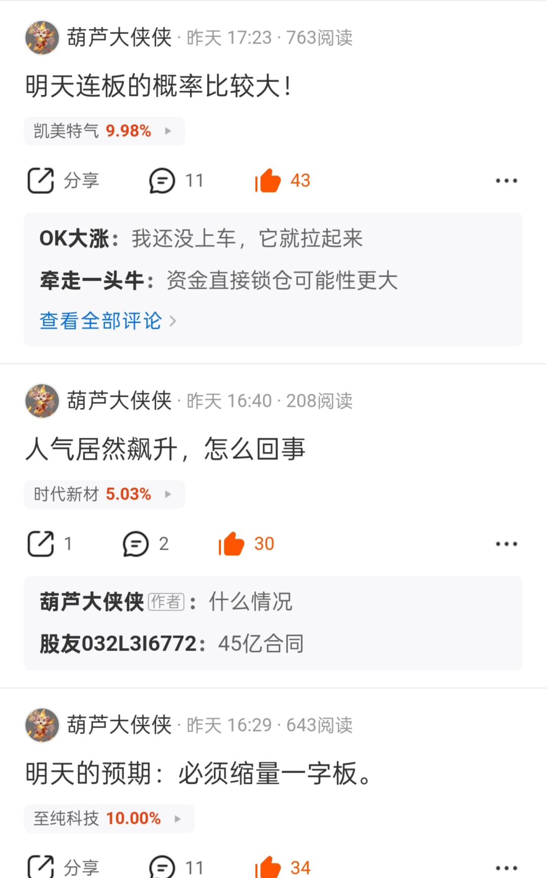郑重声明:用户在财富号/股吧/博客等社区发表的所有信息(包括但不限于文字、视频、音频、数据及图表)仅代表个人观点,与本网站立场无关,不对您构成任何投资建议,据此操作风险自担。请勿相信代客理财、免费荐股和炒股培训等宣传内容,远离非法证券活动。请勿添加发言用户的手机号码、公众号、微博、微信及QQ等信息,谨防上当受骗!