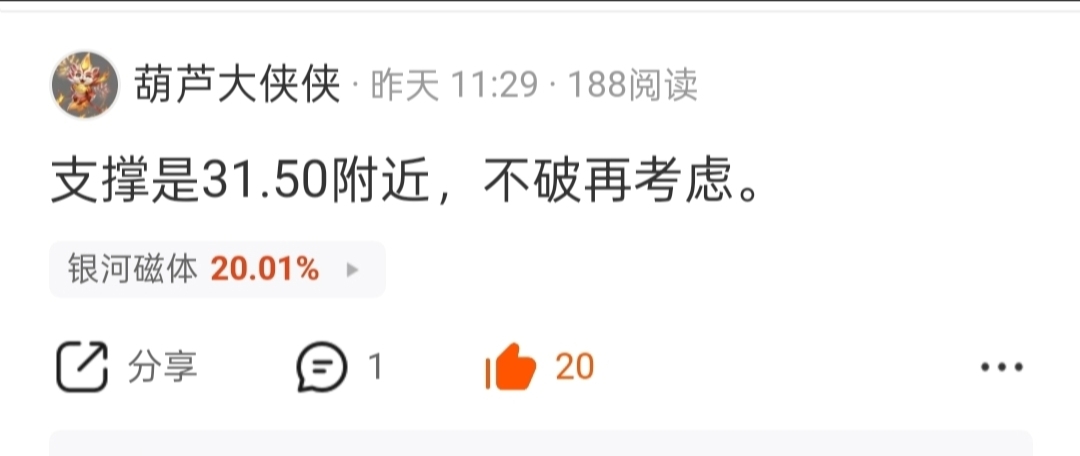 温馨提示: 1.根据《证券法》规定,禁止编造、传播虚假信息或者误导性信息,扰乱证券市场;2.用户在本社区发表的所有资料、言论等仅代表个人观点,与本网站立场无关,不对您构成任何投资建议。用户应基于自己的独立判断,自行决定证券投资并承担相应风险。《东方财富社区管理规定》