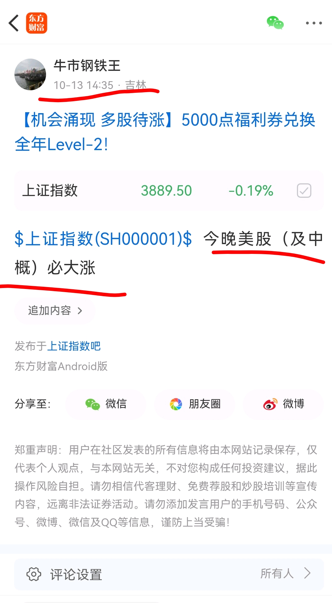 温馨提示: 1.根据《证券法》规定,禁止编造、传播虚假信息或者误导性信息,扰乱证券市场;2.用户在本社区发表的所有资料、言论等仅代表个人观点,与本网站立场无关,不对您构成任何投资建议。用户应基于自己的独立判断,自行决定证券投资并承担相应风险。《东方财富社区管理规定》