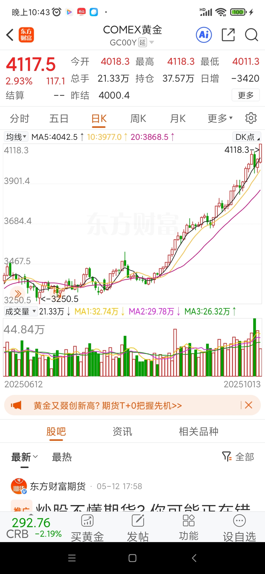 今天晚上黄金涨疯了~~国际黄金期货↗扶摇直上九重天,天下试看黄金谁能敌?上证指数