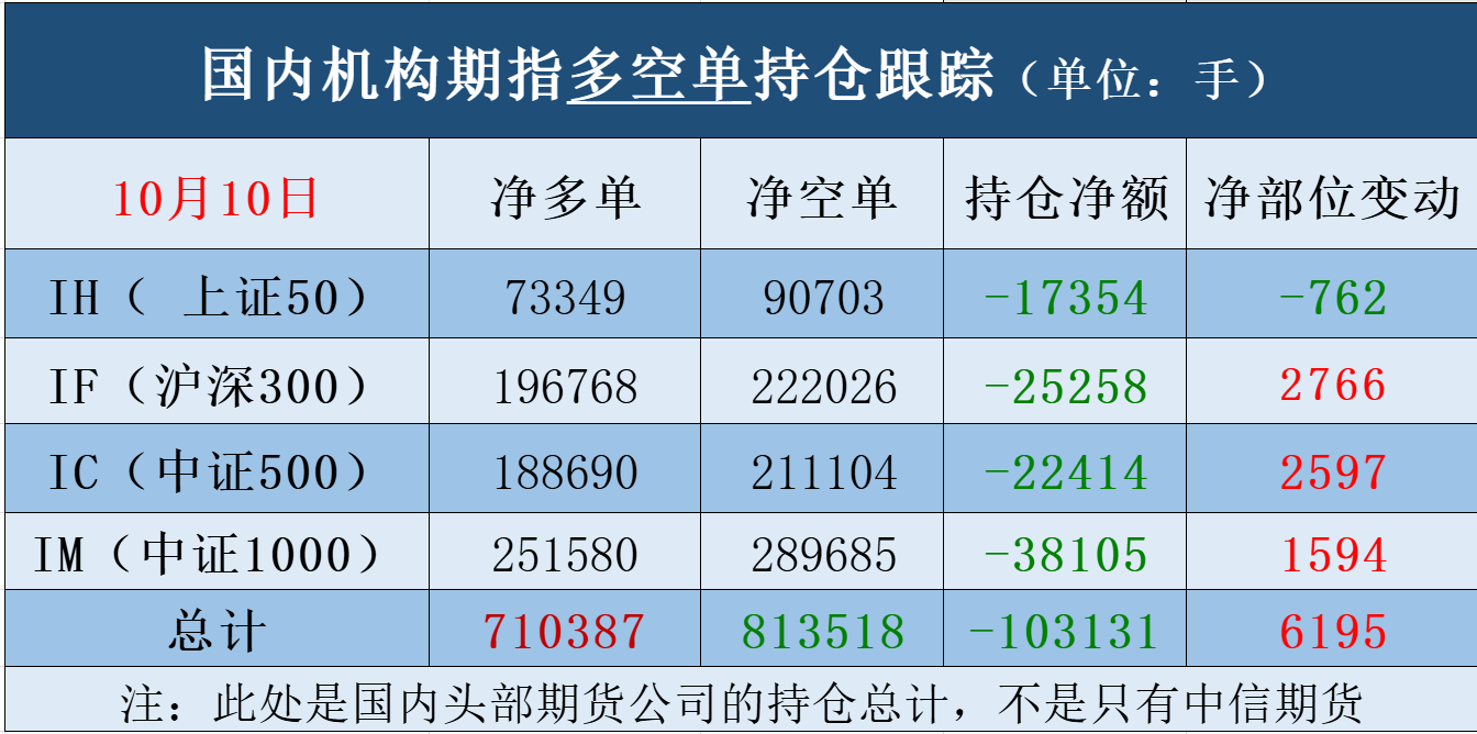 2、国内机构的期指多空单数据(前一交易日的情况):