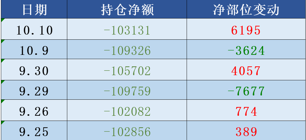 2)净空头持仓是10.3万手。