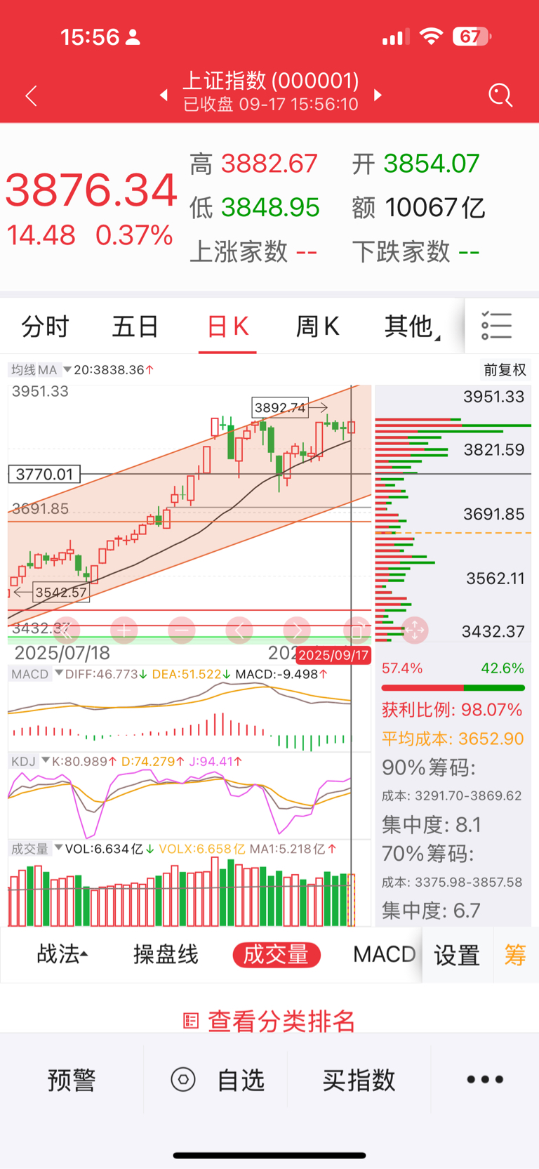 3.日线,目前收盘价还在14.07元上方,仓位还有一半,股价只要还在13线上,就持有!