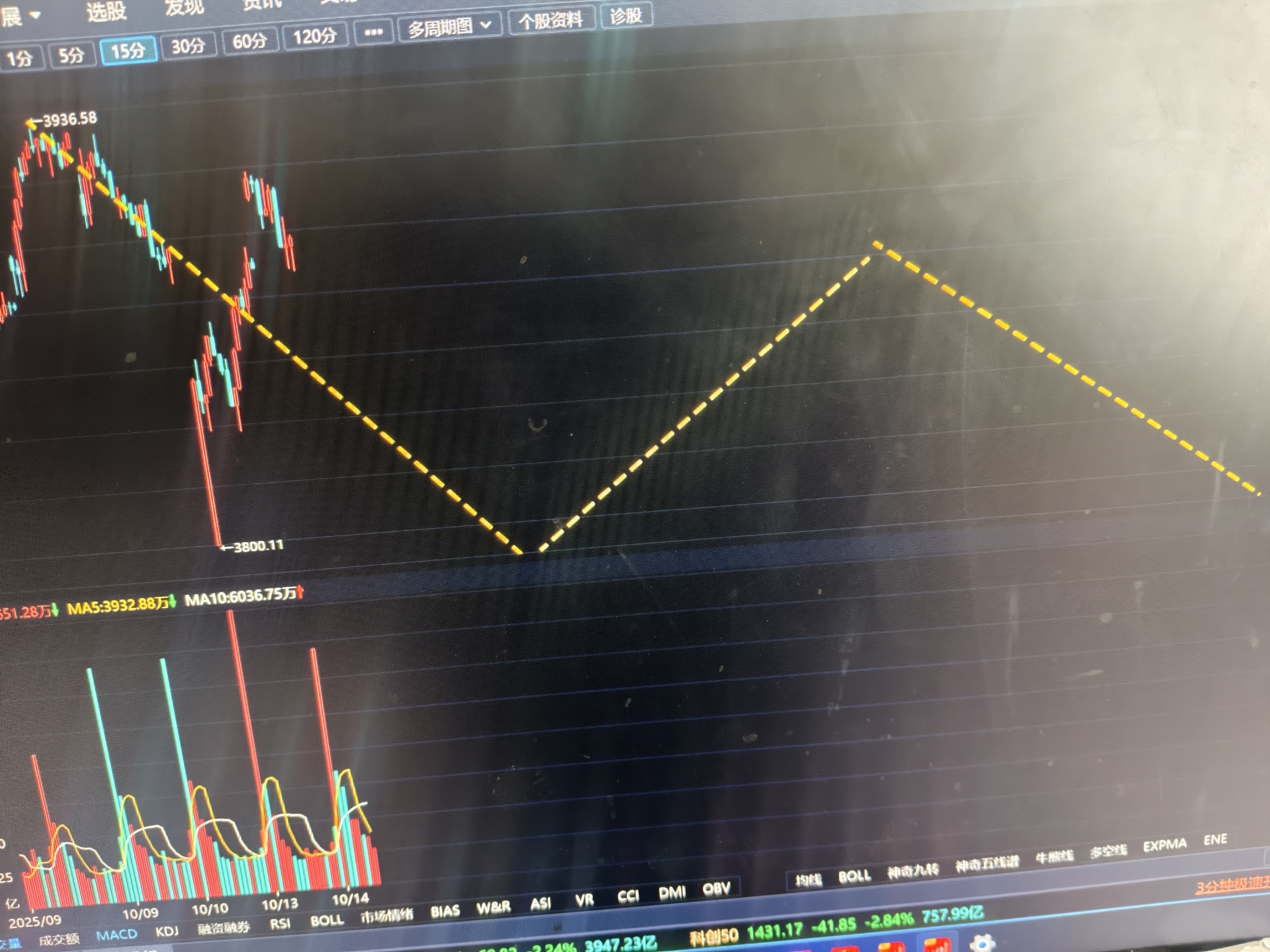 上贴以及上上贴说大盘是30f下跌。上图是大盘15f走势。也就是说30f图还在A跌