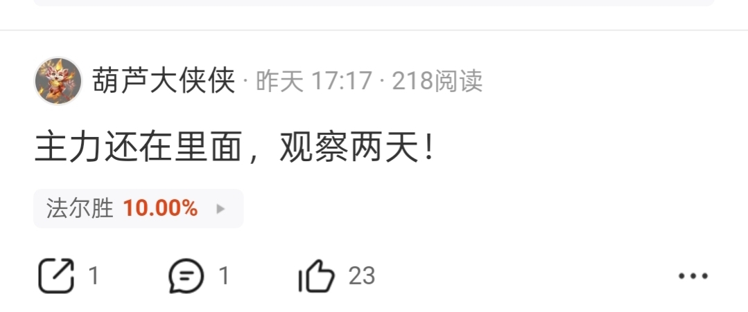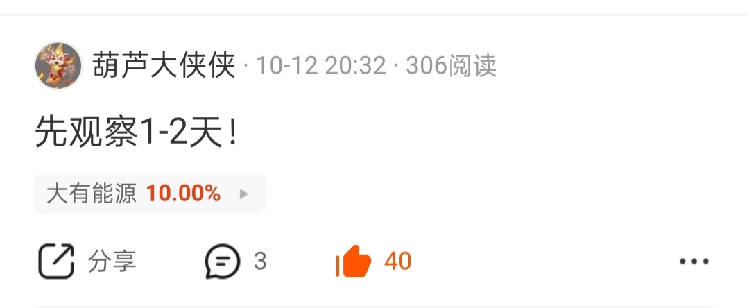 温馨提示: 1.根据《证券法》规定,禁止编造、传播虚假信息或者误导性信息,扰乱证券市场;2.用户在本社区发表的所有资料、言论等仅代表个人观点,与本网站立场无关,不对您构成任何投资建议。用户应基于自己的独立判断,自行决定证券投资并承担相应风险。《东方财富社区管理规定》