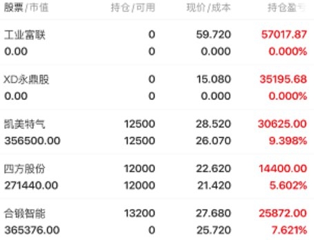 工业富联破了前期支撑位选择获利出局,后市看能不能在下方支撑位稳住再做决定;周末市场已经给板块定下基调就看能否把握的住,所以选择好的赛道才能在市场游刃有余;持有和备选个股会结合市场各方面因素以及盘中情绪变化做选择;把握节后的市场动向,需要更敏锐的洞察力,板块轮动过快,对个股冲击很大,很多个股出现调整,市场需要调整个股也不例外,所提标的每天都在实时观察,最近的操作相信很多一路支持的老铁有目共睹;如有质疑可持续验证也可爬楼观看,在此祝所有老铁投资顺利!股市长虹!!!#社区牛人计划#